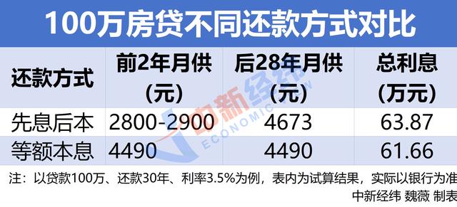 业内人士认为,“先息后本”适合近几年有月供压力的购房者,相当于“缓兵之计”。这类还款方式贷款期限是不变的,且整体利息会有所增加。