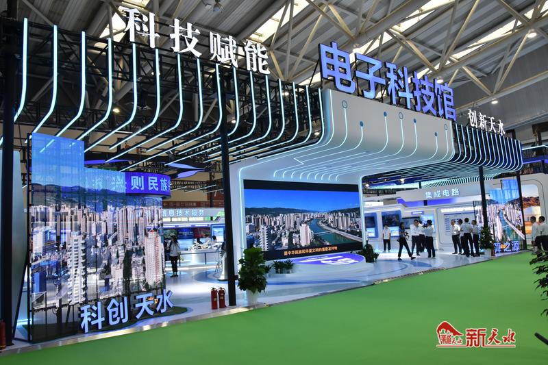 电子科技馆由省工信厅和天水市人民政府共同牵头搭建、布展,面积414平方米,展馆以“科技芯”为主元素,共分为全省电子科技宣传、集成电路、软件和信息技术服务、智能终端四个展区,全方位、多角度展现全省及天水电子信息产业高质量发展成果。天水华天科技、华洋电子、天光半导体等5家企业20多件电子科技产品参加展示展览。