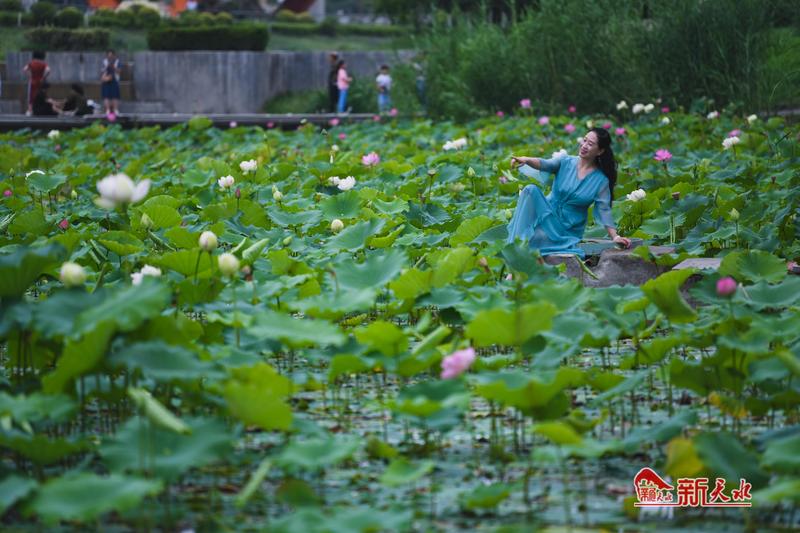 花开半夏,又是莲灿时。7月12日,记者看到位于天水市藉河风情线五里铺段湿地景观池的荷花次第盛放。