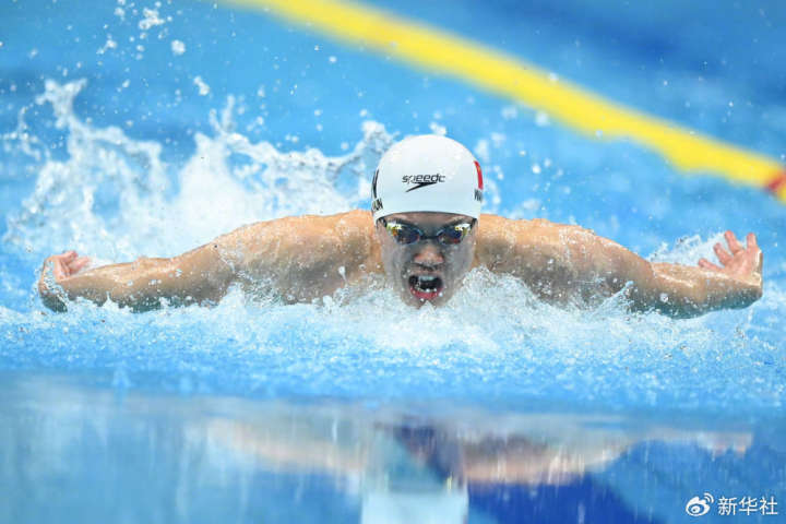 2023年9月24日,中国选手汪顺在杭州亚运会游泳比赛男子200米个人混合泳决赛中。中国选手汪顺以1分54秒62的成绩获得冠军。新华社记者 黄宗治 摄
