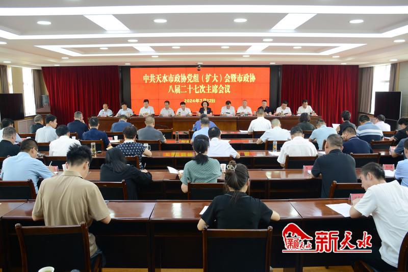 新天水讯【记者王琴 实习生杨丹妮】7月22日,市政协党组书记、主席王燕主持召开市政协党组(扩大)会暨八届二十七次主席会议。市政协党组副书记、副主席马勤学,党组成员、副主席候选人王作谊,党组成员、副主席马筱宁、吴立新、崔玉军,副主席何宝平、杨铁森、范多智,党组成员、秘书长马小龙,党组成员贾忠慧出席会议。