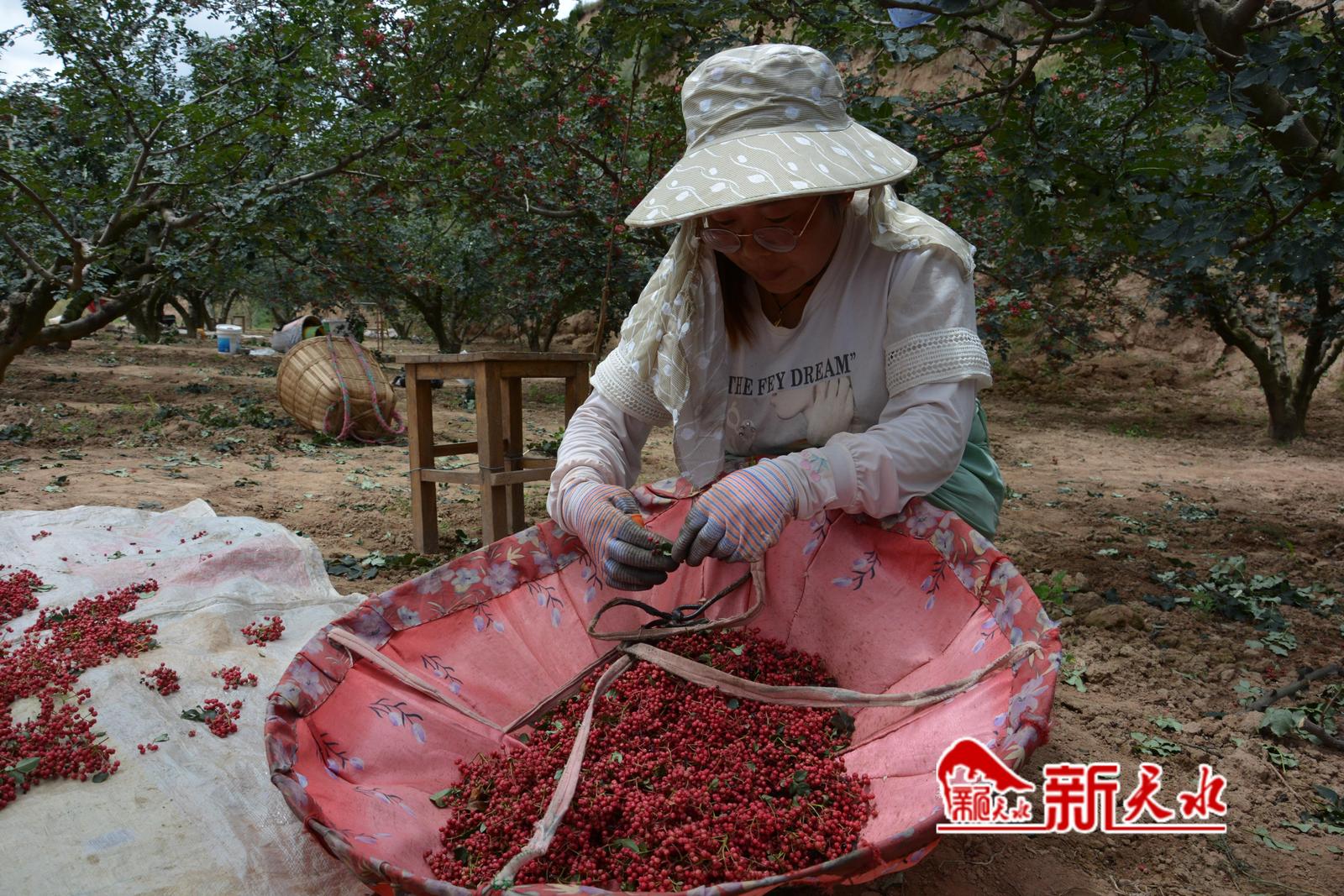 今年是武山县洛门镇村民管贵琴第二年过来采摘花椒,近期,趁着孩子们放暑假,她腾空出来摘花椒挣些零用钱。“一天能摘鲜椒四五十斤,能挣120元左右。”说起收入,管贵琴脸上难掩喜悦之情。