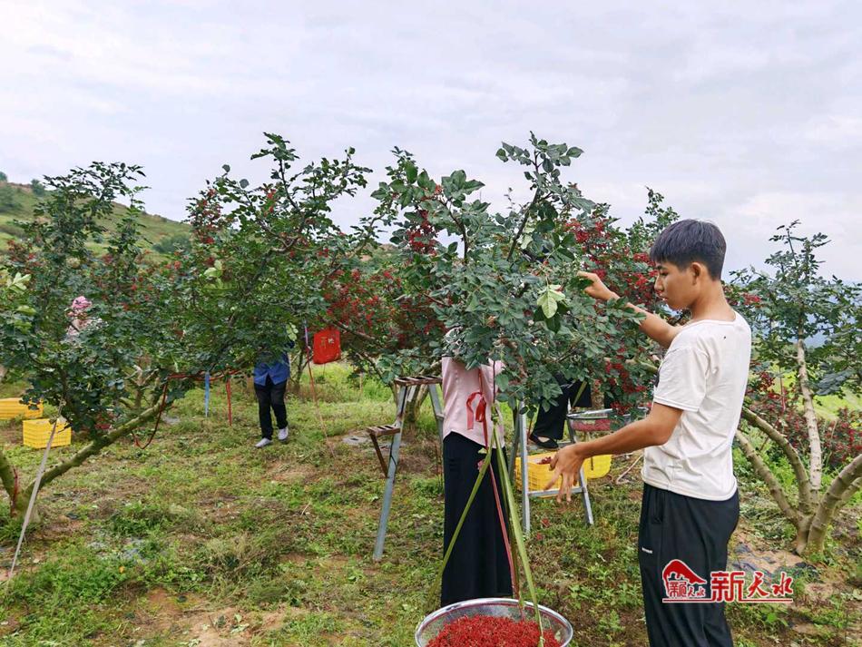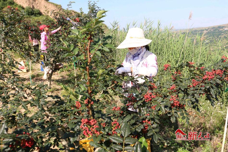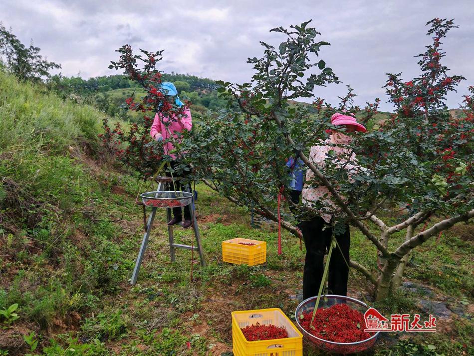 新天水讯 盛夏时节,清水县金集镇花椒种植基地的5000余亩花椒迎来了丰收季,漫山遍野的花椒树枝繁叶茂,一簇簇饱满油亮的花椒挂满枝头,微风拂过,带来阵阵椒香。椒农们或挎着篮子或背着背篓,动作麻利地采摘花椒,个个洋溢着丰收的喜悦,一幅丰收的美好画卷就此展开。