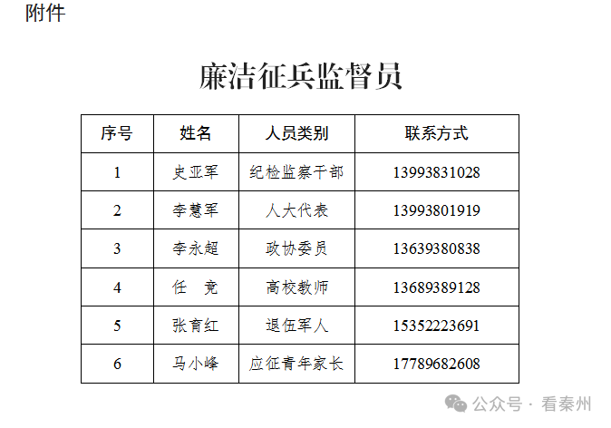 天水市秦州区人民政府征兵办公室致参军入伍青年及家长的廉洁公开信