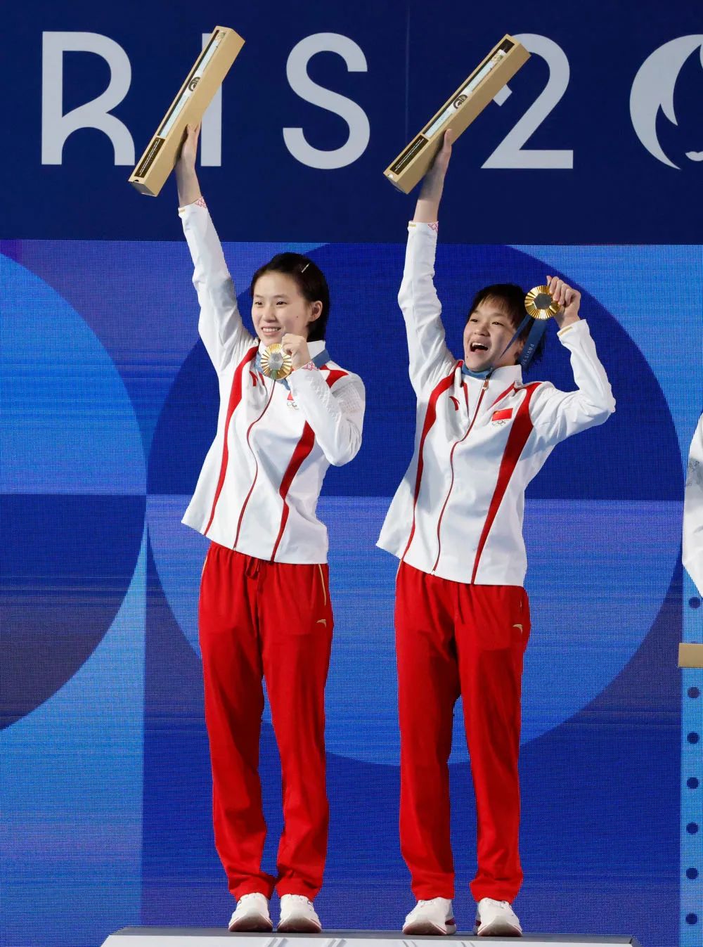 △ 7月31日,冠军中国选手陈芋汐(左)/全红婵在颁奖仪式上。新华社记者 张玉薇 摄