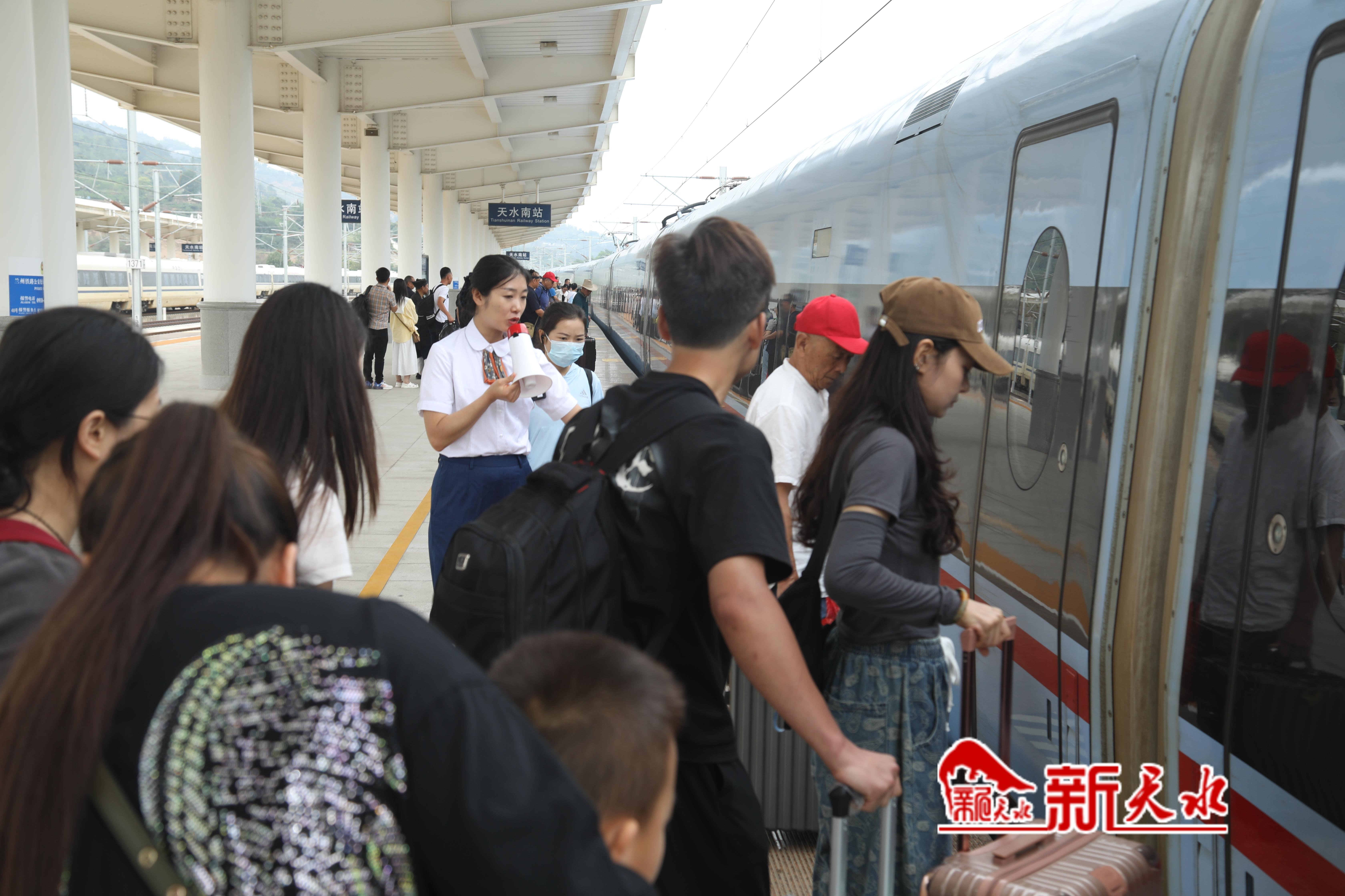 记者在天水南站看到,候车厅内人头攒动,乘客们井然有序通过检票闸机。据了解,截至8月7日,天水南站累计接发旅客122万人次。根据学生流、旅游流等出行需求,动态优化运力投放,精准实施“一日一图”,全力满足旅客出行需求。除此之外,重联开行天水至北京、上海、广州、杭州、青岛、西宁等热门方向动车组列车30列,加开天水至西安、北京、昆山、商丘等方向临时普速列车12列。暑运期间,宝兰高铁天水南站开行动车组列车118列、陇海铁路天水车站开行旅客列车68列。