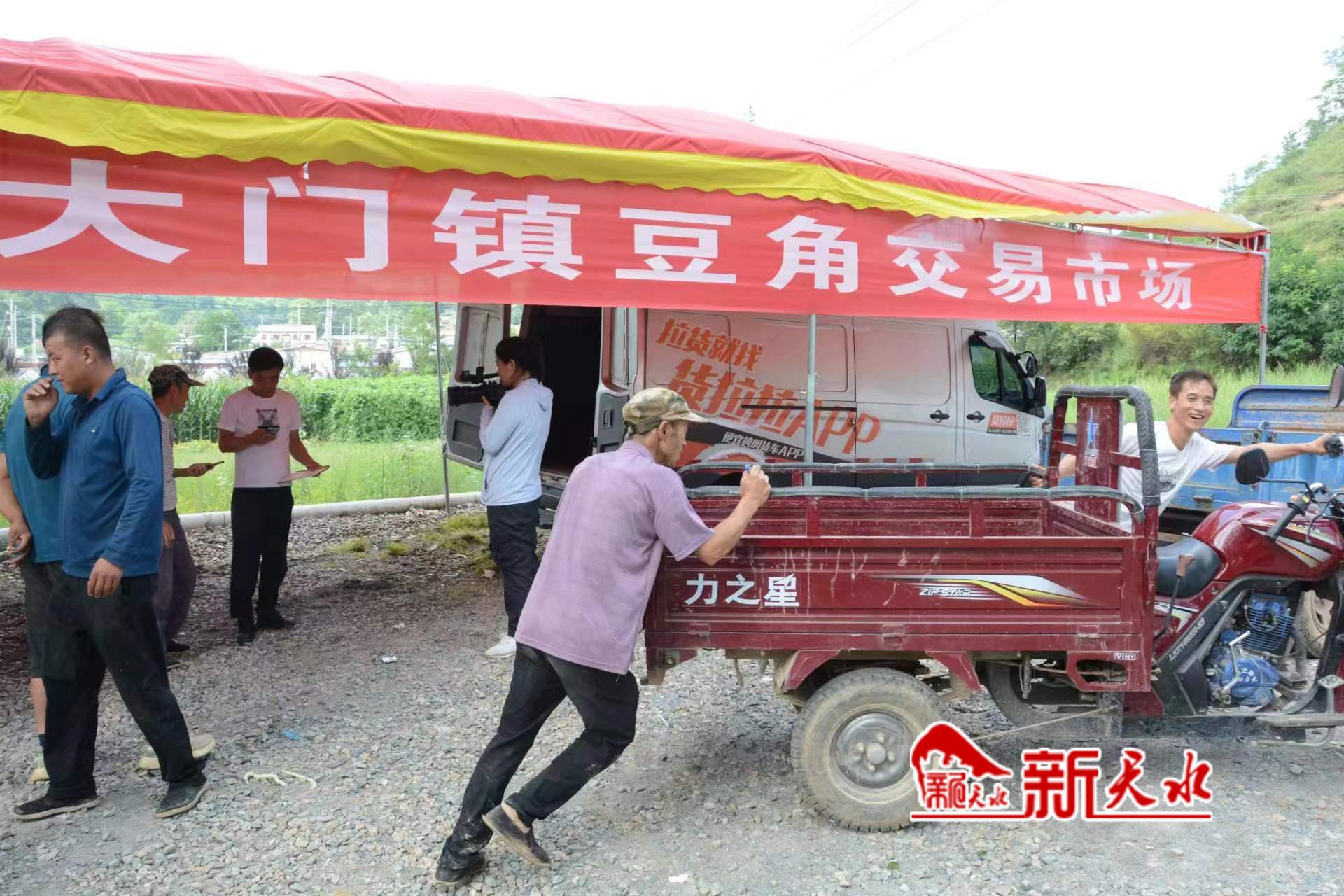 “老板,我车上有32袋豆子,你来验一下货。”一位姓苏的村民刚停稳车就大声喊道。经过验货、装车、付款等一系列程序后,这位村民憨厚地笑着说:“为了交易方便,我们的豆子都是30斤一袋子装好的,一袋子卖60元。我种了6亩豆子,今天是第一次采摘,32袋卖了将近2000元。随着进入旺季,每天的采摘量还会增加。现在我们这里的豆子产、销对接得很好,有豆子不愁卖,有豆子就能变成钱,这小小的豆子是我们发家致富的‘金豆豆’!”