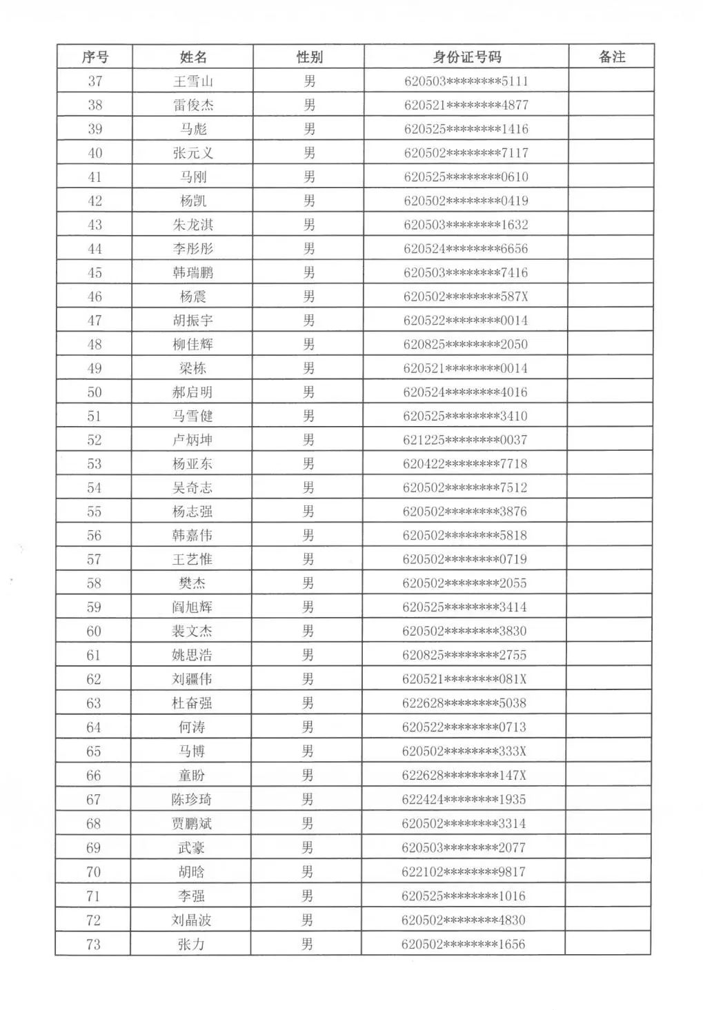 天水市公安局秦州分局公开招聘警务辅助人员拟聘用人员名单公示