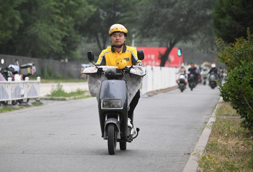 5月23日,一名外卖骑手在北京市海淀区四季青镇送餐。新华社记者任超 摄