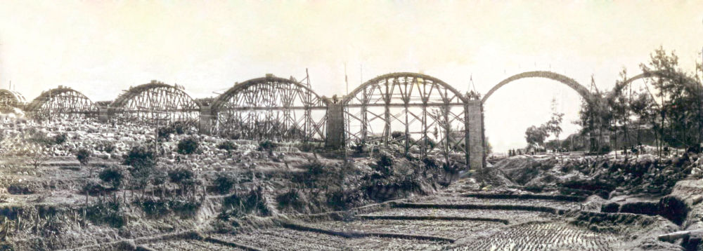 左侧的“满堂式”木拱架与改良后的新式木拱架对比,后者能节省七成木料。杨正允摄