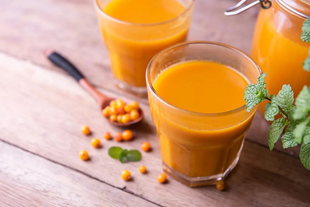 以沙棘鲜果加工而成,未经稀释、浓缩及调配的沙棘汁。这种沙棘原浆味道其实也很酸,不适合直接饮用,可以加适量水稀释一下再喝(建议别加糖哦!)。以沙棘果汁为主调制的甜饮料,为了改善口感,往往会含有添加糖,比如葡萄糖、蔗糖、白砂糖、蜂蜜等。有冻干全果粉和冻干果粉两种。沙棘冻干全果粉是全程在低温环境下对鲜果进行冻干、脱水、研磨等处理得到的粉状产品,保留了沙棘果果肉、种子、果皮中所有营养物质。普通的沙棘冻干果粉则是在沙棘原浆的基础上,经真空低温喷雾干燥或冷雾干燥后制得的,营养上不如冻干全果粉。沙棘果油是去籽后的沙棘果加工制成的食用油,不饱和脂肪酸含量约为60%以上,还含有胡萝卜素和生育酚;沙棘籽油是由沙棘籽加工而成的食用油,不饱和脂肪酸含量约为80%以上。