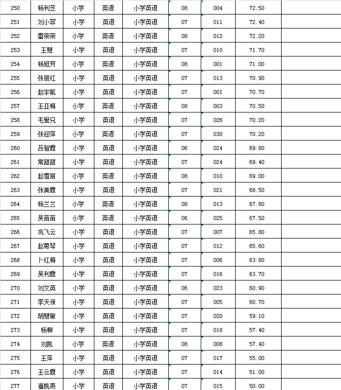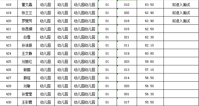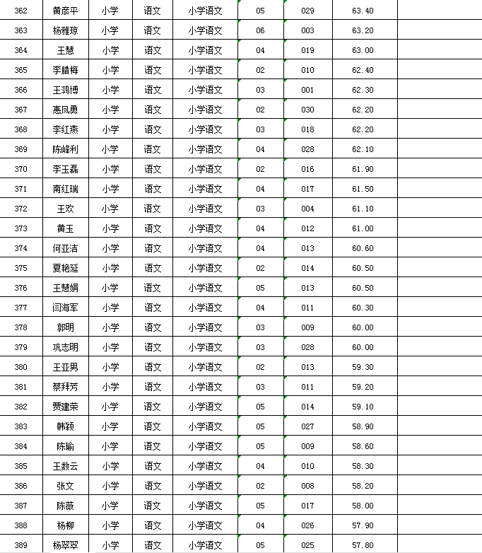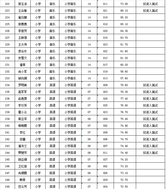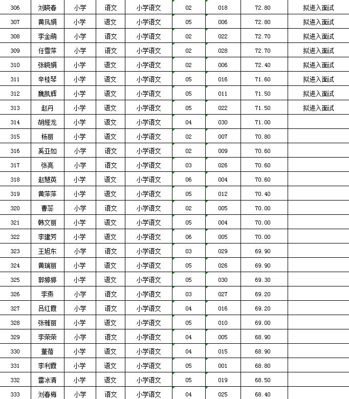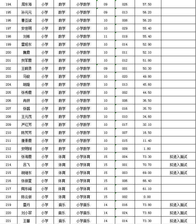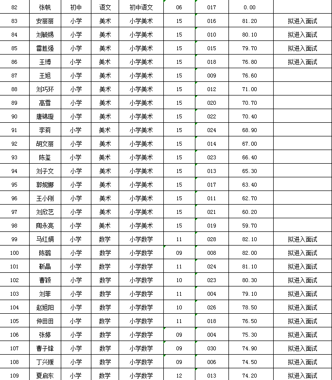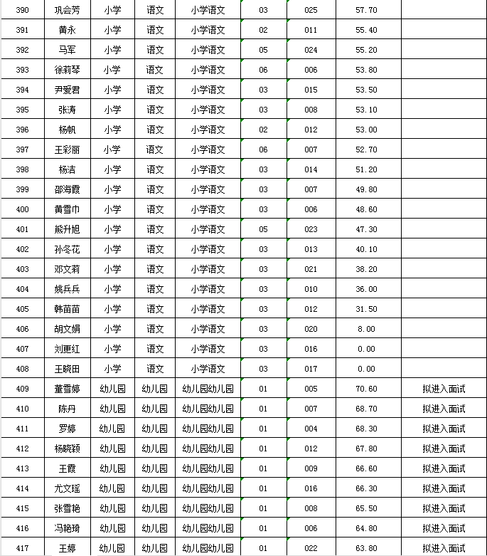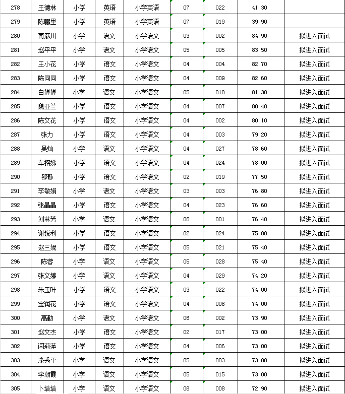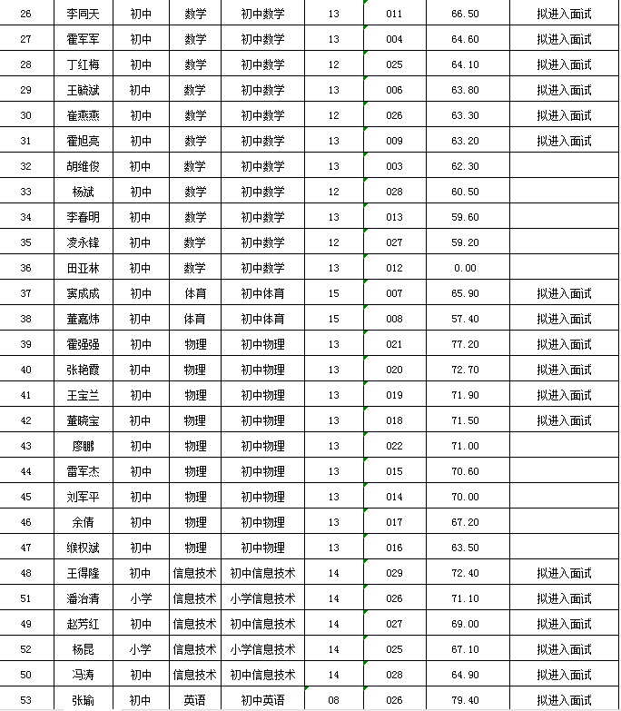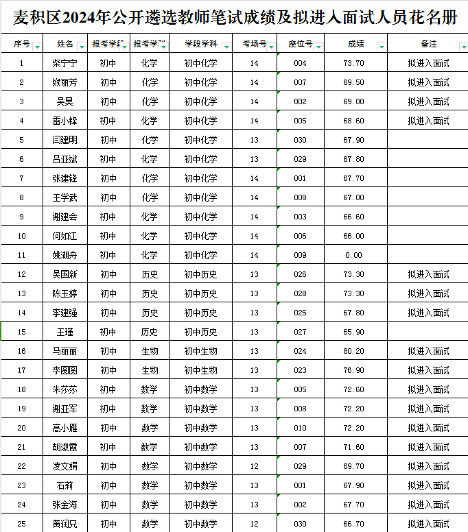 附件:麦积区2024年公开遴选教师笔试成绩及拟进入面试人员花名册