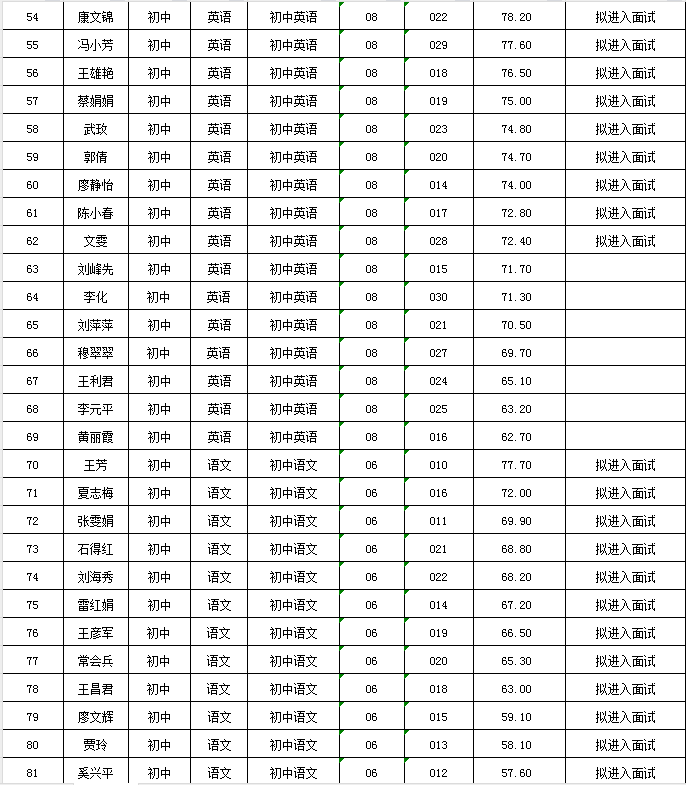 笔试成绩及入围面试人员公告