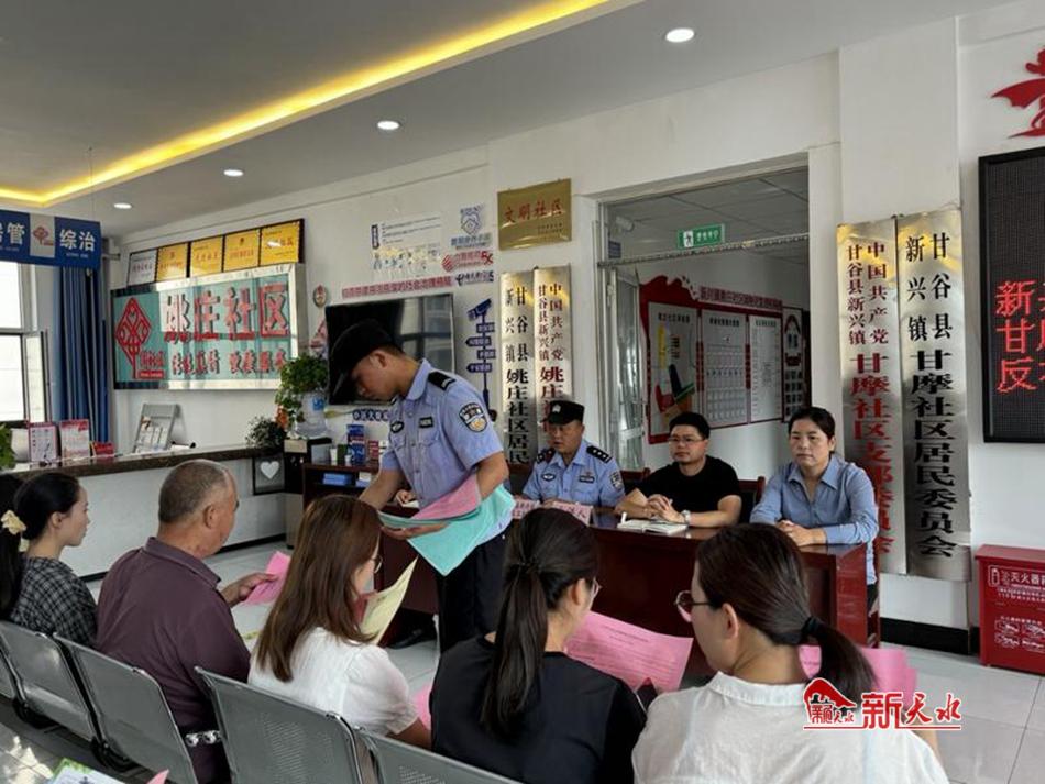 新天水讯 近日,甘谷县新兴镇姚庄社区、甘摩社区联合姚庄派出所开展“电信诈骗”“禁毒”“反有组织犯罪”宣传活动,以不断提高广大群众对于电信网络诈骗的识别能力和辨别抵制组织违法犯罪的意识,建设平安新兴镇。