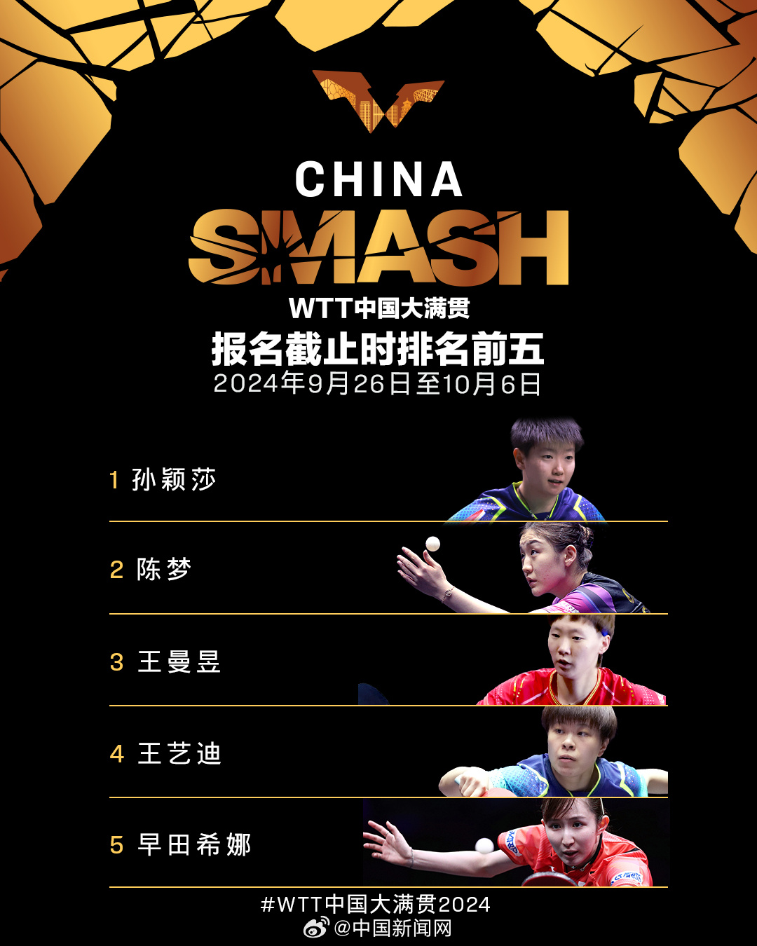 WTT中国大满贯2024将于9月26日至10月6日在北京举行。