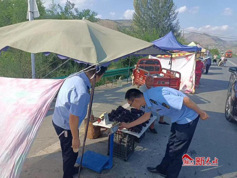 新天水讯 当前,正值麦积区新阳镇葡萄销售旺季,麦积区市场监管局新阳镇市场监管所开展了葡萄销售市场计量专项检查,以切实创造公平公正的市场交易环境。