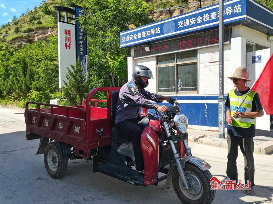 “头盔戴上再走呀老马,这安全驾驶可马虎不得。”交通劝导员李斌一边挥着手里的小红旗,一边走上前去给村民戴上头盔。张家川县胡川镇胡川村口的交通安全检查劝导站是胡川村与宁马村、阳山村三村共同进行值班值守的站口,重点对过往三轮车和电动车的违法载人、不戴头盔现象进行常态化劝导。“在大家的共同努力下,这项工作还是很有成效的,村民的安全意识有了明显提升。我们作为劝导员在这里值班,为大家平安出行贡献一点力量,感到也是很光荣的。”李斌说道。坚持人民至上、生命至上,把保护人民生命安全摆在首位,小小的劝导站不只是树立文明新风站,更是人民幸福生活的保障站。
