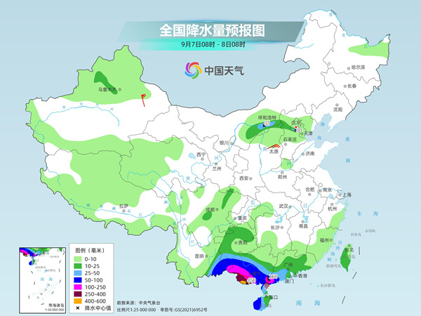 今明两天,海南、广东、广西、云南等地仍会有十分猛烈的风雨影响,局地降雨具有一定极端性,暴雨灾害风险较高。具体来看,中央气象台预计,今天,广西中南部、广东西南部、海南岛西部、云南东南部以及内蒙古中部、河北中部等地部分地区有大到暴雨,其中,广西南部、广东西南部、云南东南部等地部分地区有大暴雨,广西南部沿海局地特大暴雨(250~450毫米)。