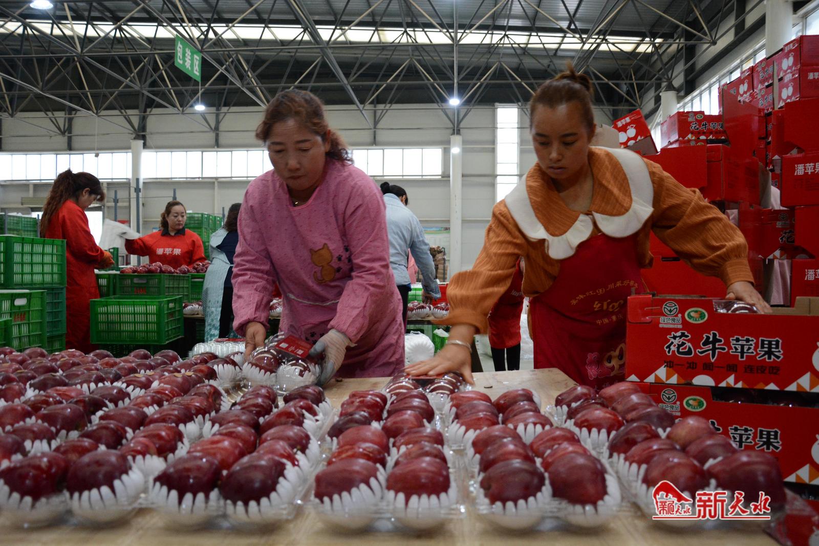 除了种出好苹果,天水市还花大力气做好花牛苹果产业集聚融合发展。围绕苹果生产、加工、销售和一二三产业融合发展,全市培育发展了一批上联市场、下联基地的苹果产业化新型经营主体,推进苹果全产业链建设。