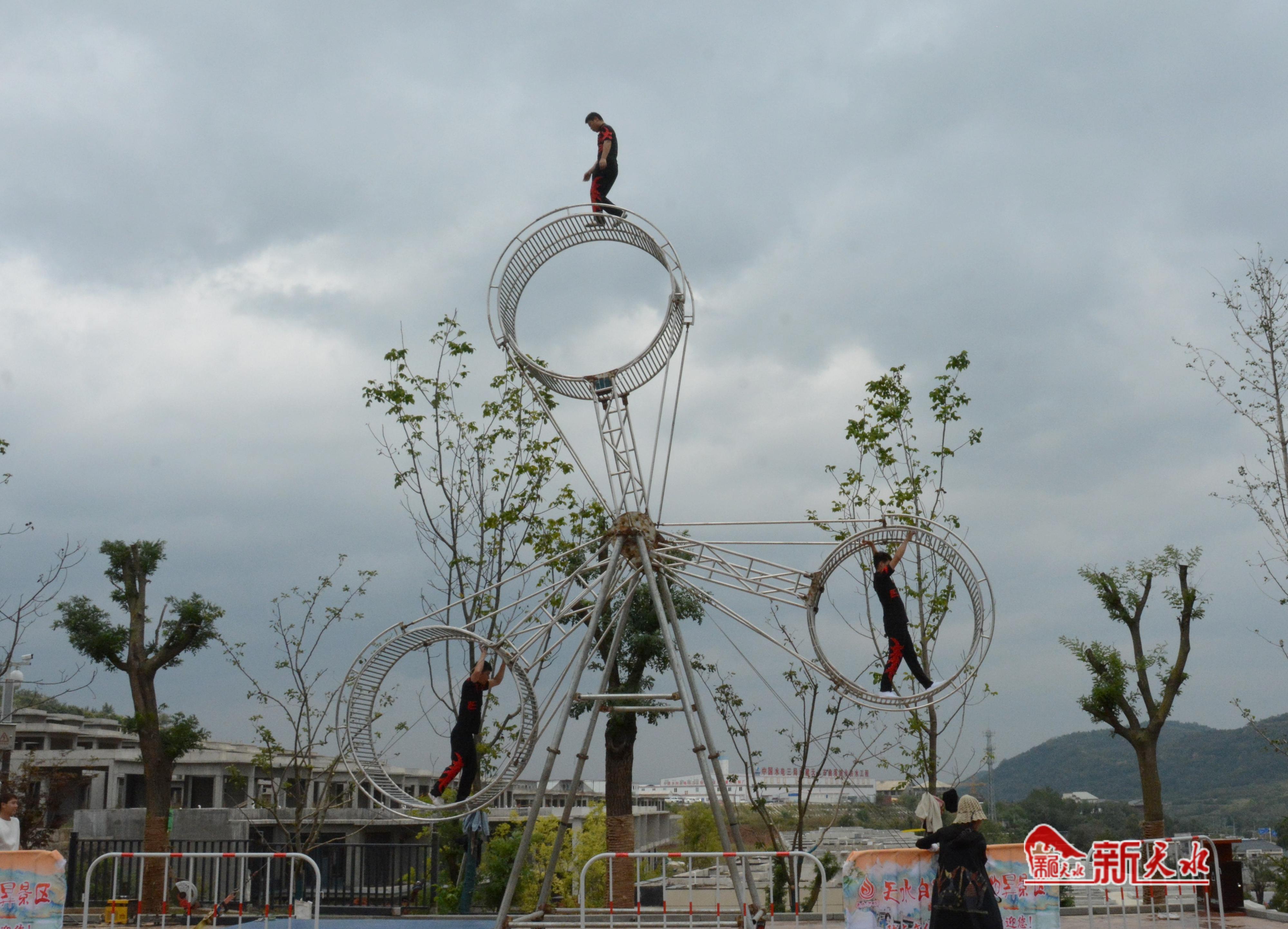 新天水讯【记者黄虹 马仓仓】惟妙惟肖的舞狮表演,惊险刺激的环球飞车,扣人心弦的高空钢丝摩托车和死亡飞轮表演,还有非遗表演上刀山,古彩戏法通天绳……这个中秋假期,天水白鹿仓旅游度假区的各种节目精彩纷呈,令人应接不暇。
