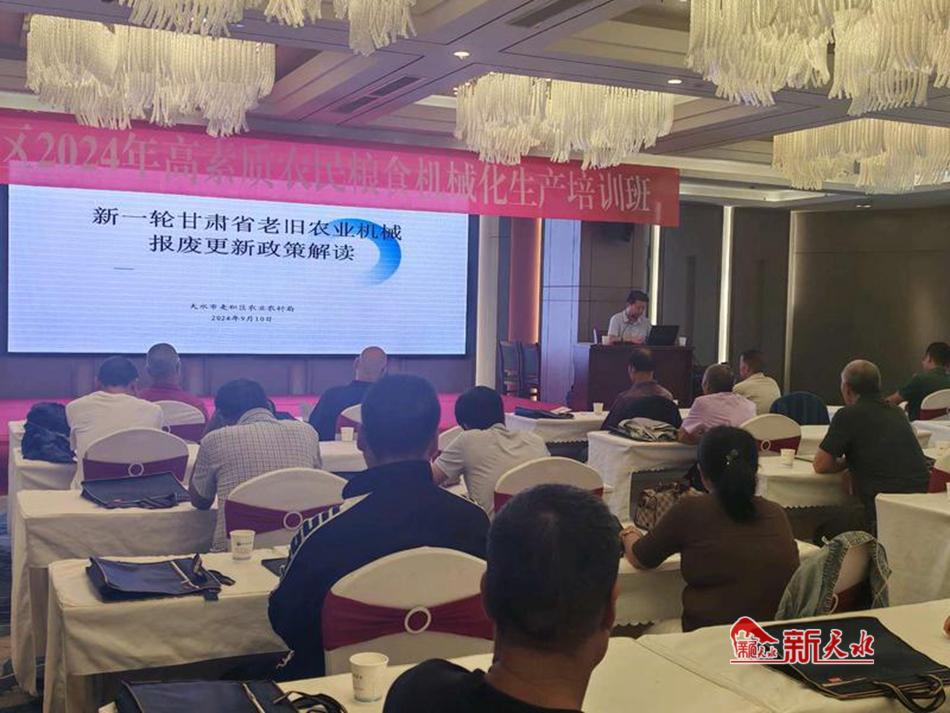 新天水讯 近日,麦积区举办新一轮甘肃省老旧农业机械报废更新政策解读培训班,以贯彻落实国务院关于推动大规模设备更新和消费品以旧换新工作决策部署,进一步加快老旧农业机械报废更新进度、推进农业机械装备更新换代、促进农机安全生产和节能减排。