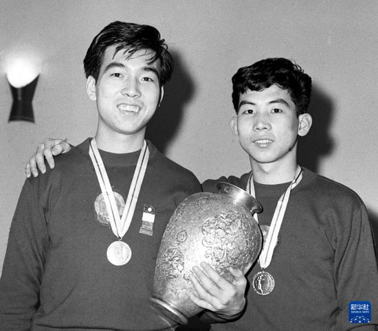 这是荣获第27届世界乒乓球锦标赛男子双打冠军的中国选手张燮林(左)、王志良(资料照片)。新华社记者 张家骅 摄