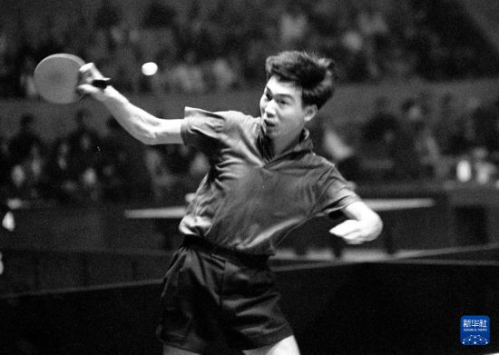 这是1961年4月11日,中国选手张燮林在第26届世界乒乓球锦标赛单项比赛中。新华社记者 邹健东 摄