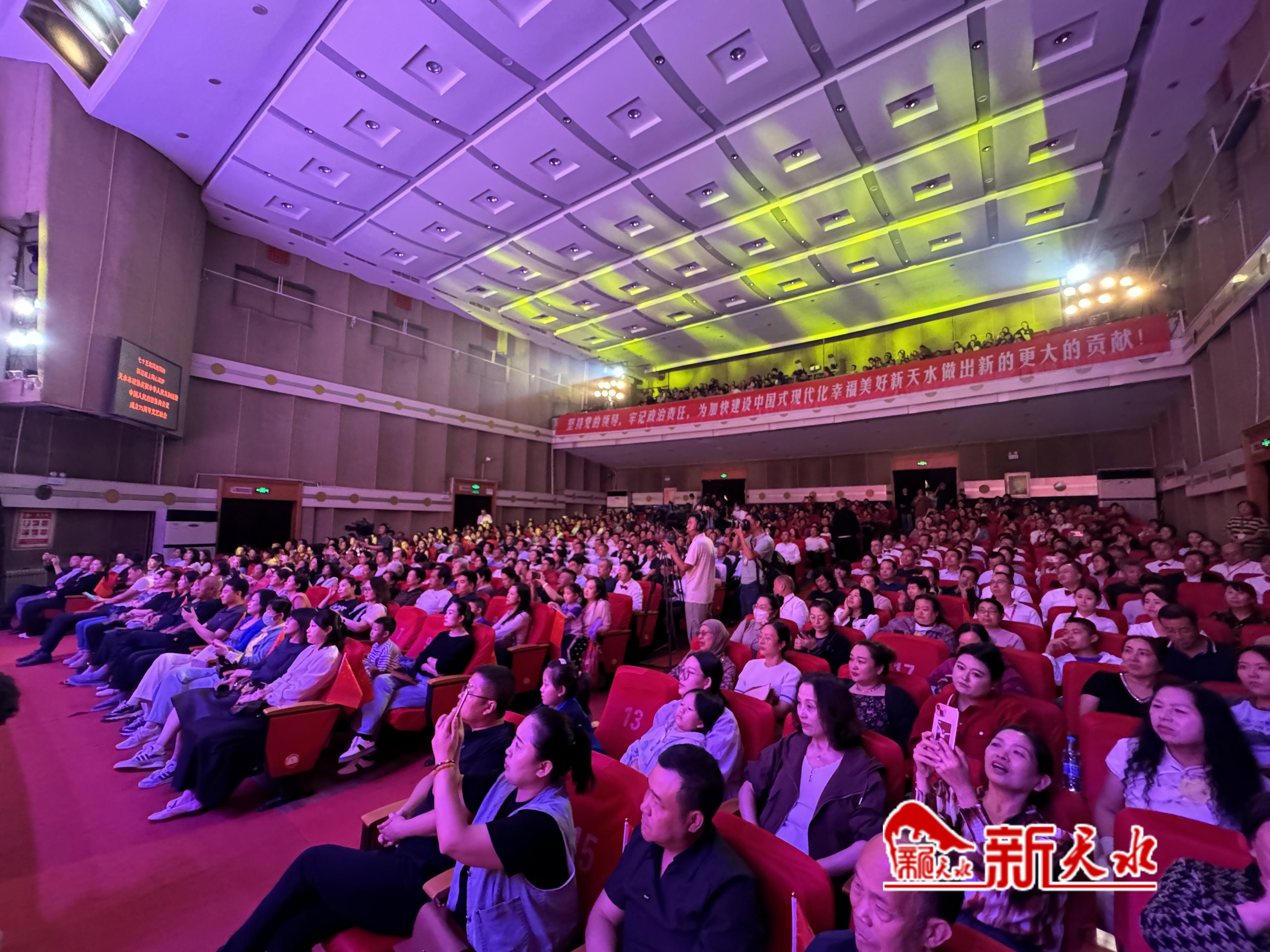 新天水讯【记者王琴】七十五载沧桑巨变,七十五载壮丽征程。天水市政协庆祝中华人民共和国暨人民政协成立75周年文艺晚会25日晚在秦州大剧院举行。市四大组织在家领导和法检两长,省政协教科卫体委员会领导,部分退休老干部,各县区党委、政府、政协主要负责同志,市直及驻市相关部门负责人,市政协机关、市级各民主党派、市工商联全体干部职工、部分政协委员共1000多人观看演出,共同回顾新中国和人民政协成立75年来的辉煌历程,共同祝福伟大祖国繁荣昌盛、人民幸福安康。