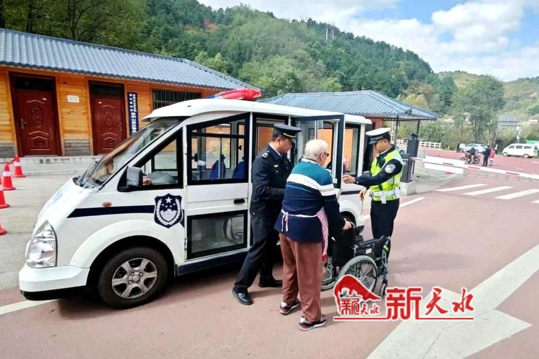 高龄游客行动不便 麦积交警暖心护送