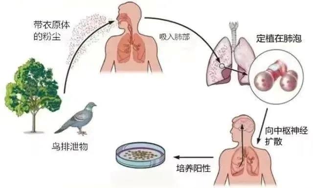 多发生于打扫禽舍、清理鸟笼或鸽舍中粪便,吸入被鸟类和家禽污染的空气;以及宰杀禽类、鸟类拔毛时。
