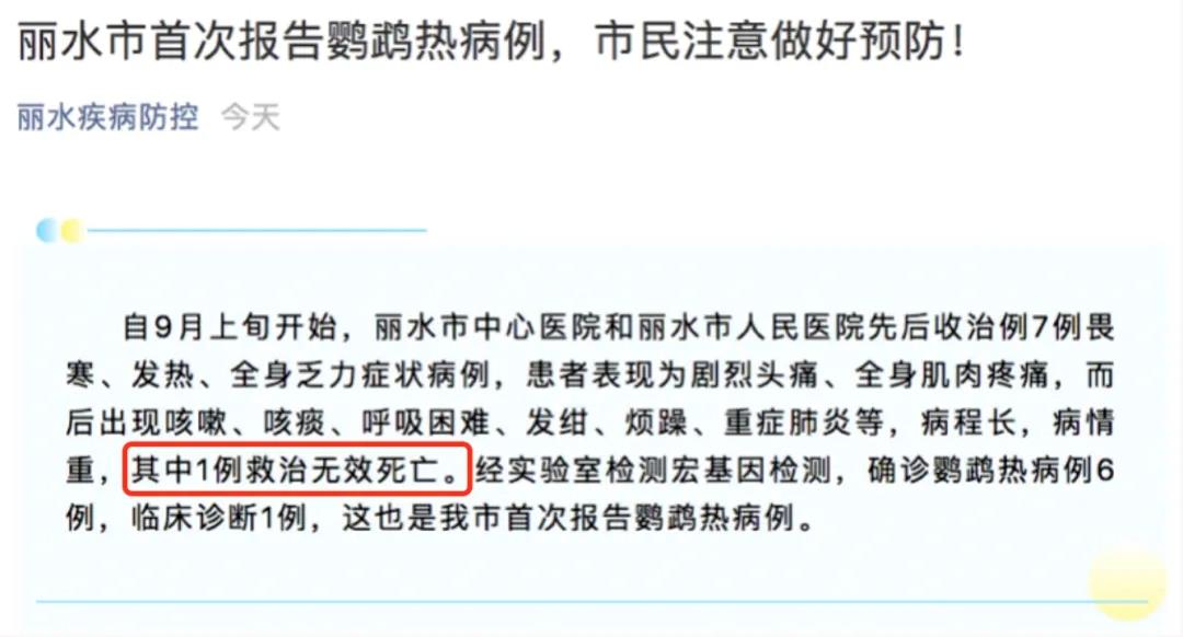 △2021年,浙江丽水曾报告1例“鹦鹉热”死亡病例