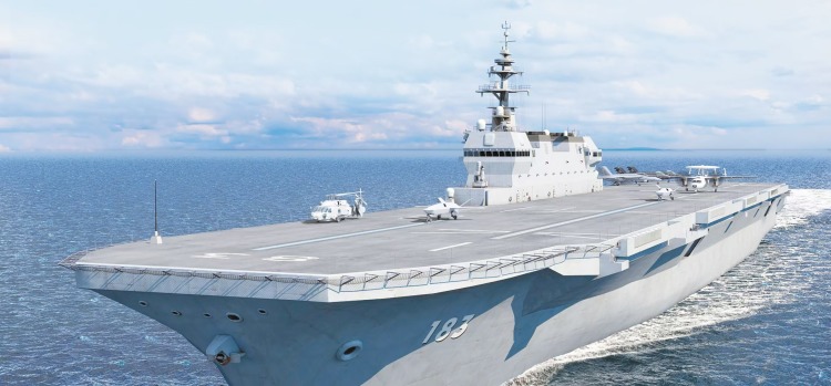 “动力”网站称,种种迹象显示,日本可能并不满足于将“出云”级升级为可搭载F-35B的“传统”轻型航母。此前批评人士认为,即便是完成全面升级的“出云”级,由于实际可以搭载的舰载机总数和种类都偏少,特别是没有配备舰载预警机,探测能力有限,因此并不具备独立的大规模作战能力,仅能伴随美国超级航母充当“打下手”的角色。报道注意到,不久前在东京举行的日本国际航空航天博览会上,美国通用原子航空系统公司展示了Gambit 5舰载无人机,该无人机采用通用模块化设计理念,可以在“出云”级航母上部署。通用原子航空系统公司展出的概念图上,改装后的“出云”级航母配备了两条电磁弹射器,其飞行甲板上出现了F-35B和“超级大黄蜂”舰载战斗机、Gambit 5舰载无人机以及E-2“鹰眼”舰载预警机。