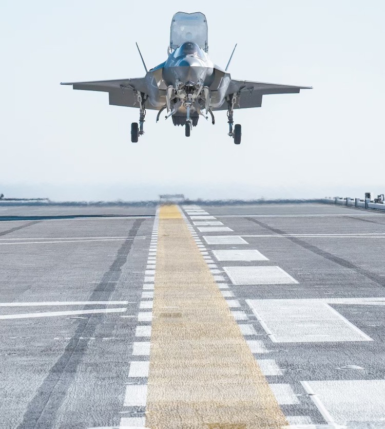 F-35B在“加贺”号上降落。(图源:海上自卫队)
