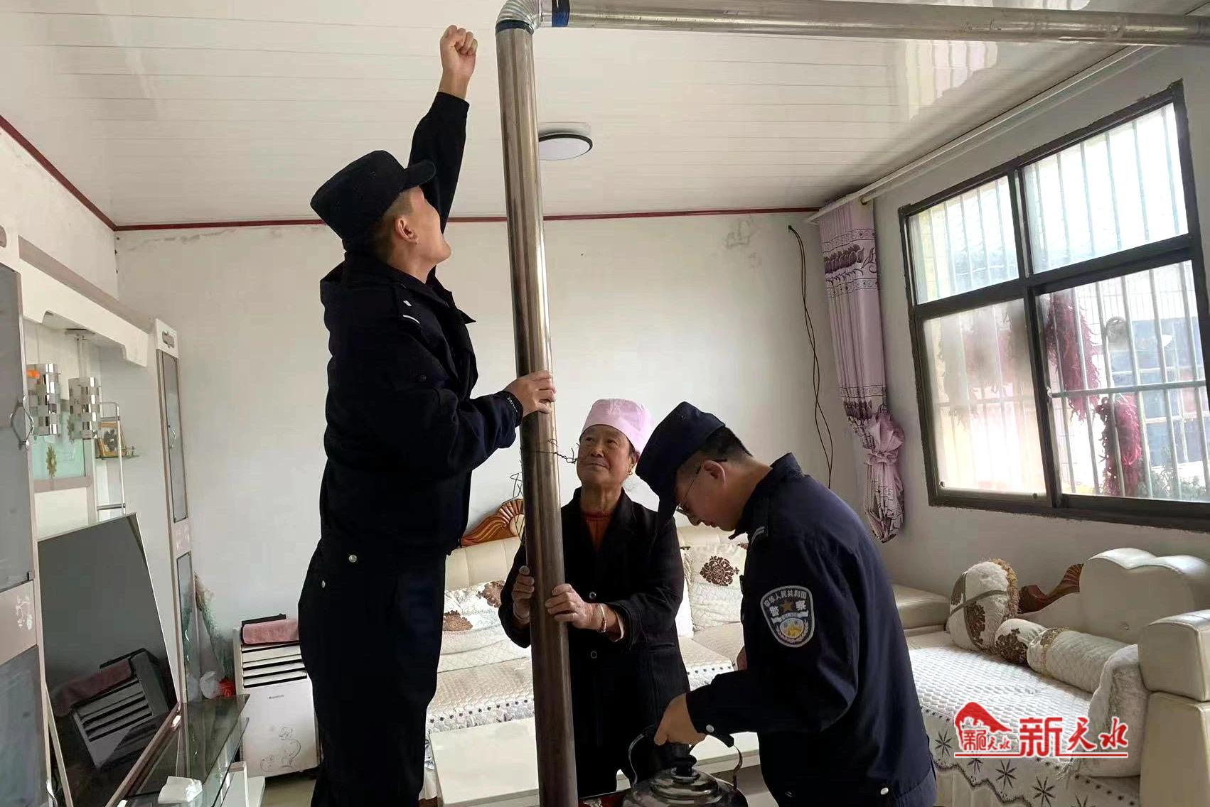 “李叔,这个烟囱可不能用胶带贴上凑合,烟排不出去容易造成中毒,快把烟囱重新安装一下,让家人都平平安安过冬。”10月25日,清水县公安局远门派出所民警张明明一进村民家院子,就开启了唠叨模式,意识到问题的严重性,村民老李马上开车去集市买来了新烟囱。