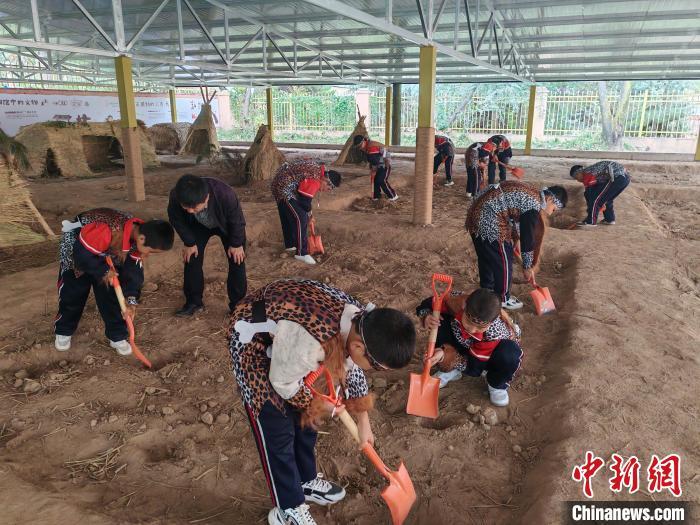 10月16日,大地湾博物馆开展“史前工坊”特色主题社教活动,吸引大批孩子参与体验。 (秦安县委宣传部供图)