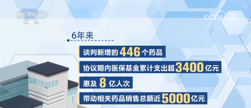 特点三,减轻负担。通过医保的“团购”,很多“贵族药”开出了“平民价”。2023年,通过谈判新增进入医保目录的105个药品,2024年前三季度惠及797.8万人次,9月份药品销售额是1月份的七倍。6年来,谈判新增的446个药品,协议期内医保基金累计支出超3400亿元,惠及8亿人次,带动相关药品销售总额近5000亿元。叠加谈判降价和医保报销等多重因素,累计为群众减负超过了8000亿元。