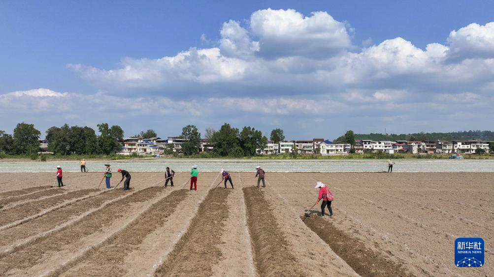 10月28日,在四川省遂宁市蓬溪县红江镇白坪村,村民在为种植芍药做准备(无人机照片)。新华社发(刘昌松摄)