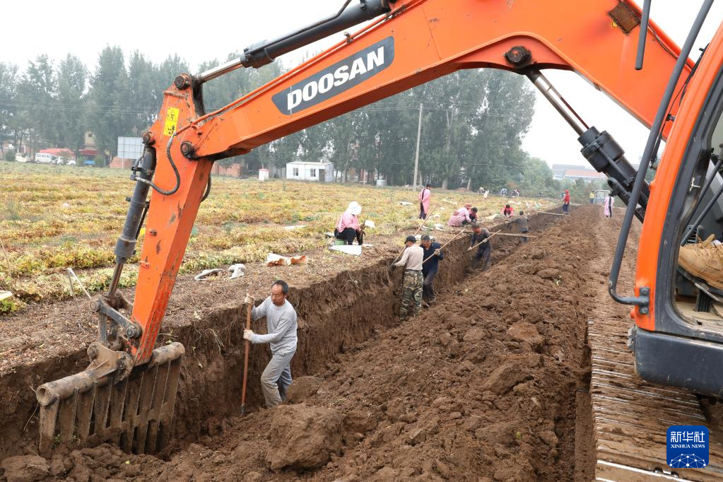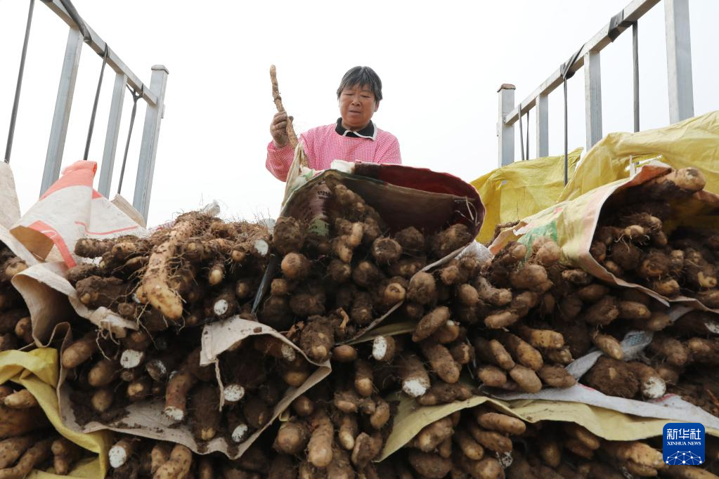10月28日,河南省焦作市温县岳村街道赵郭作村农民在田间收获铁棍山药。新华社发(徐宏星摄)