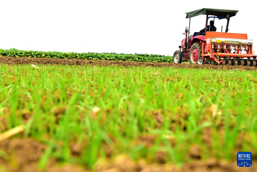 金秋时节,多地农民利用晴好天气开展秋收、秋种等工作,确保丰产丰收。