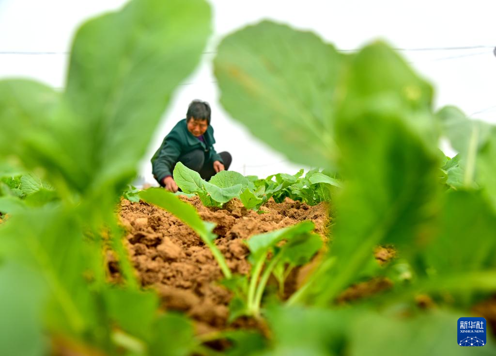 10月27日,山东省枣庄市山亭区桑村镇桑村村农民在给油菜间苗。新华社发(刘明祥摄)