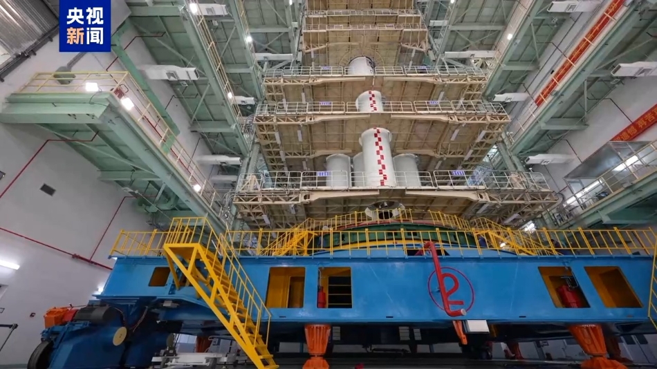 长征二号F火箭的总装和测试工作,都是在酒泉卫星发射中心的垂直总装测试厂房中完成的。这座高大的建筑也是所有载人火箭从“平躺”完成“站立”的地方。 在神舟十九号船箭组合体进行垂直转运前,总台记者获准进入垂直总装测试厂房探访,厂房里什么样?我们一起去看看。