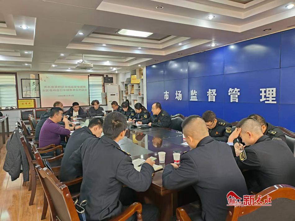 新天水讯 11月4日,麦积区市场监管局召开电动自行车销售单位约谈会,以进一步规范全区电动自行车市场经营行为,保障电动自行车销售环节质量安全,保护群众生命财产安全。