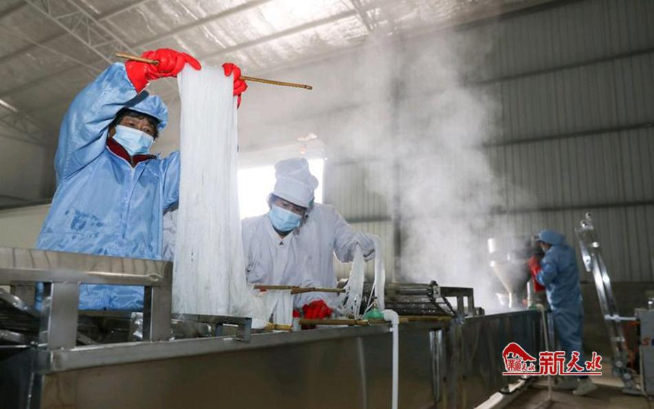 粉条厂内,工人们忙碌地将洋芋加工成粉条。优质的洋芋经过清洗、磨浆、漏粉等一系列流程,变成了晶莹剔透、口感爽滑的粉条。这些粉条凭借其优良的品质,在市场上拥有稳定的销路和良好的口碑。粉条厂的建成运营,大大提高了洋芋的经济价值,让种植洋芋的农民获得了更多的收入。 面粉厂和挂面厂则是围绕杂粮和小麦展开生产。面粉厂将当地产的小麦和杂粮精细研磨,生产出多种类型的面粉,满足了不同消费者对于面粉的需求。而挂面厂则利用这些面粉,制作出各种口味和类型的挂面。无论是原味的小麦挂面,还是添加了杂粮营养成分的特色挂面,都在市场上受到欢迎。这些产品的生产加工,带动了整个杂粮和小麦产业链的发展。胡芳红种植养殖农民专业合作社负责人胡芳红说:“我们主要从周边收购各种优质杂粮,然后将其加工成面粉,我们的面粉品质好,消费者比较认可,线上主要是销往北京科技大学和天津市津南区,线下主要销往周边县区。”
