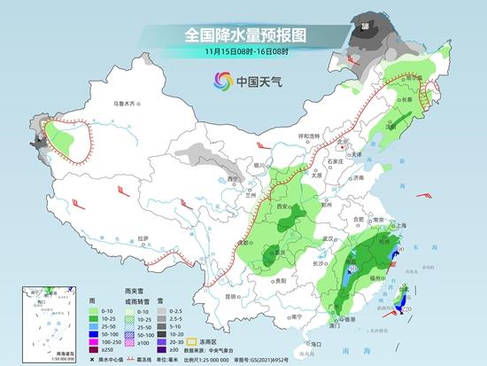 具体来看,今天内蒙古东部、黑龙江西部、新疆南疆西部山区、甘肃祁连山山区等地部分地区有小雪或雨夹雪,其中,内蒙古东北部、黑龙江西北部、新疆南疆西部山区等地部分地区有中到大雪,局地暴雪。陕西南部、重庆西部、江西东部和南部、浙江中南部、广东西北部、台湾岛东部和南部等地部分地区有中到大雨,其中,浙江中南部沿海、台湾岛东部和南部等地局部地区有暴雨或大暴雨。