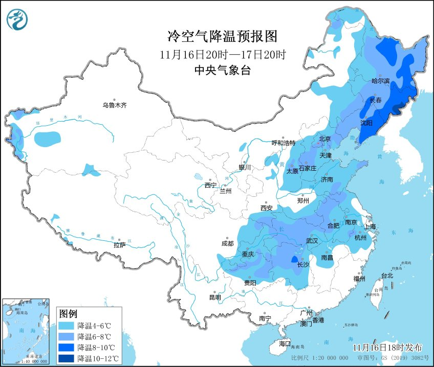 明天,我国中东部大部都会降温。其中京津冀、河南、山东北部和东部、陕西南部、湖北、安徽中南部、江苏中北部、上海、贵州、湖南、江西北部、浙江等地部分地区降温幅度可达4-8℃,东北地区大部和内蒙古东部等地部分地区降温更为剧烈,降幅可达6-14℃,局地可达16℃左右。