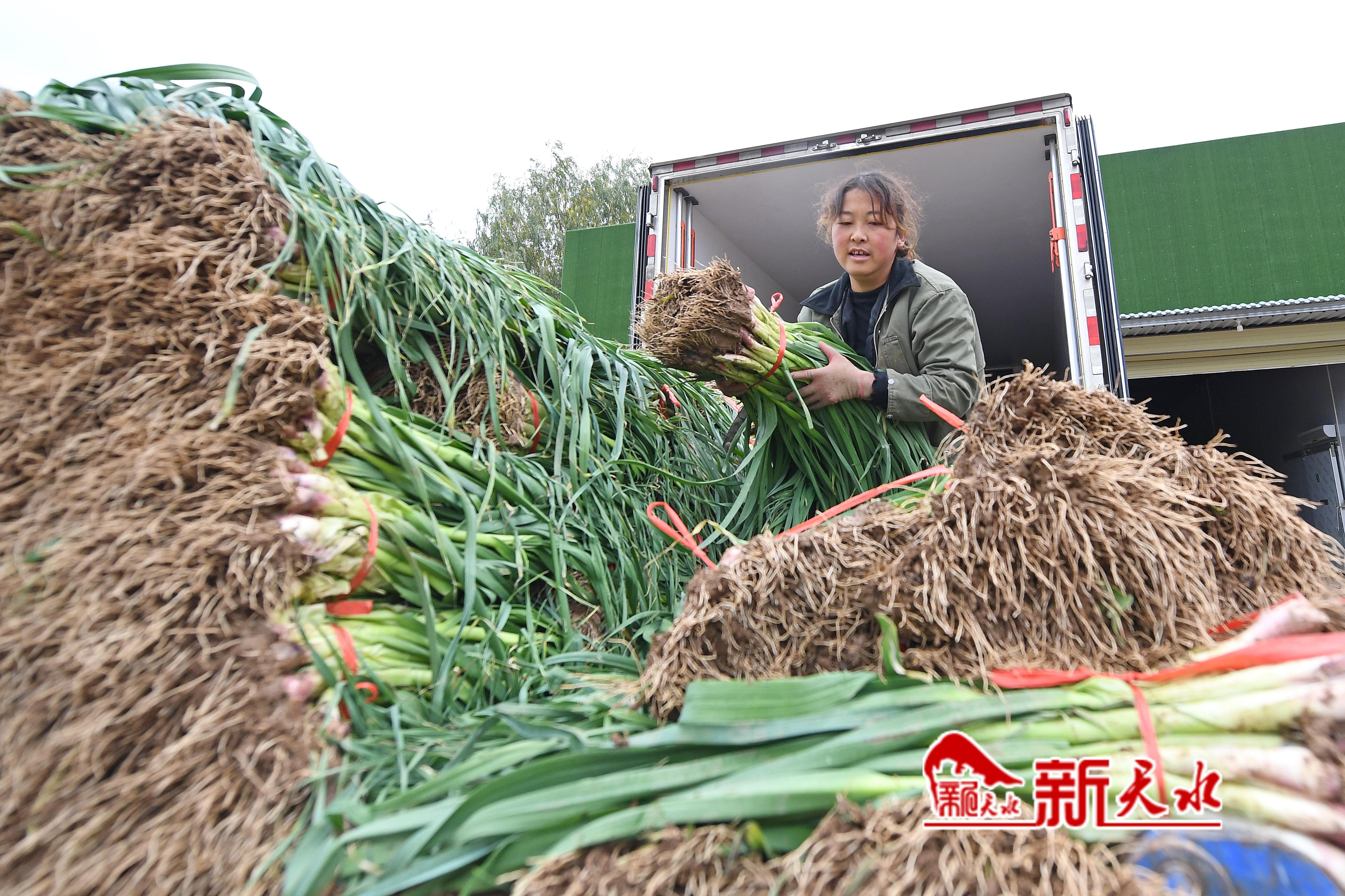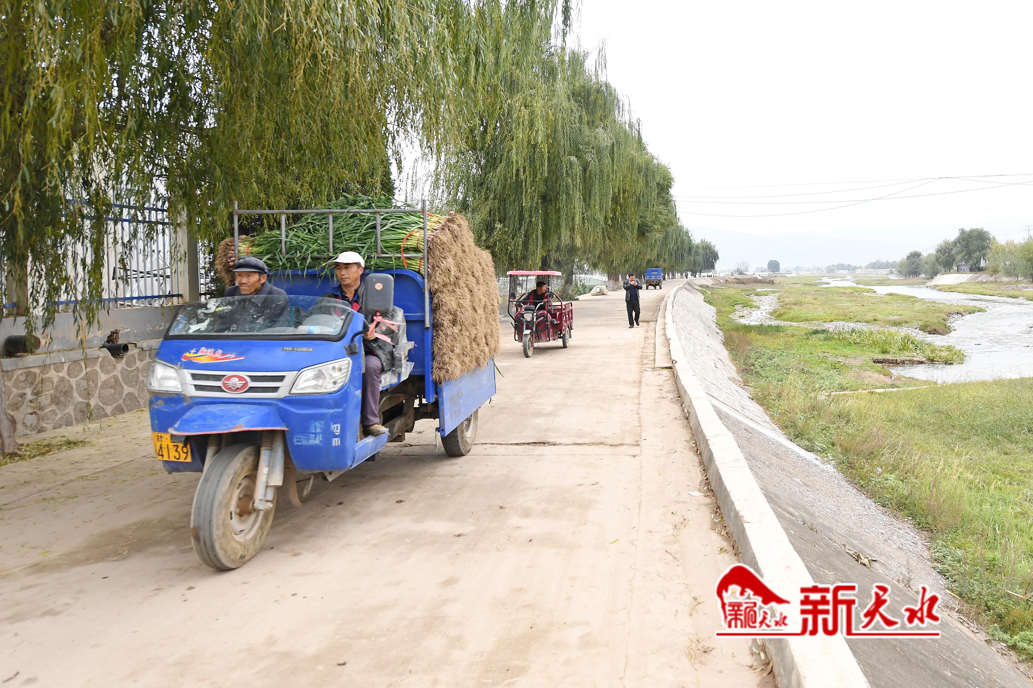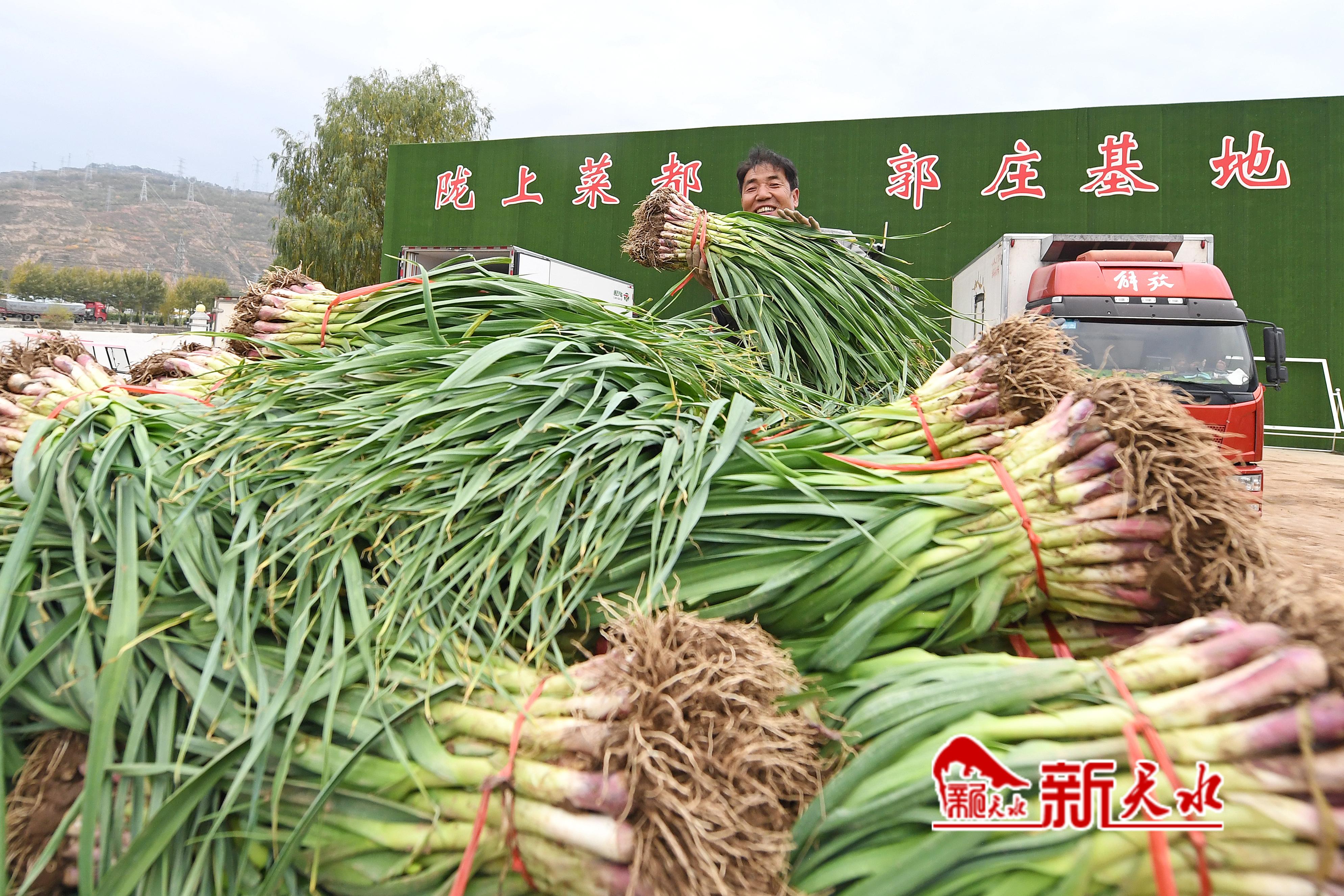 “渭河行”全媒体大型主题采访组一行来到武山县时,恰逢蒜苗大量上市。尽管时至深秋,渭河支流大南河两岸依然满目葱茏,沿河种植的2万亩蒜苗已经成熟,农户们忙着采挖、分拣、打包、装车,一派生机勃勃景象。