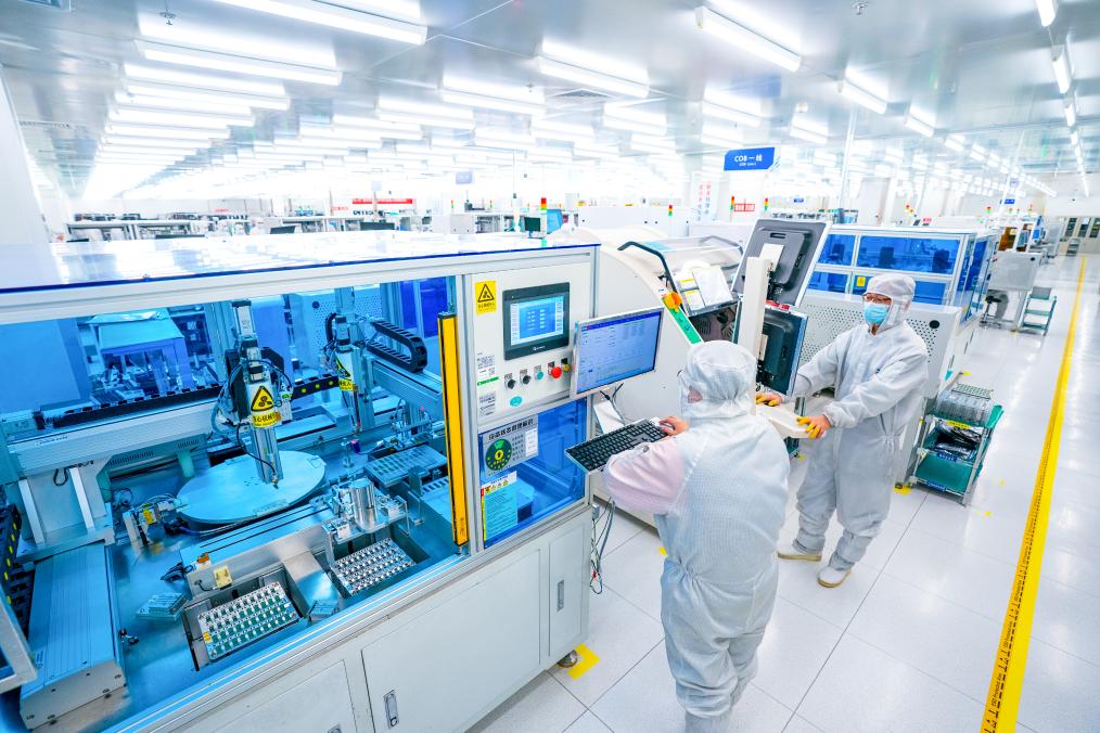 2月5日,在位于武汉中国光谷的光电器件研发制造商——武汉光迅科技股份有限公司的生产车间里,工作人员在光模块生产线上作业。新华社记者 肖艺九 摄