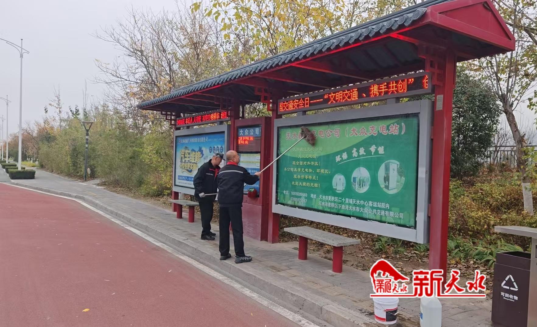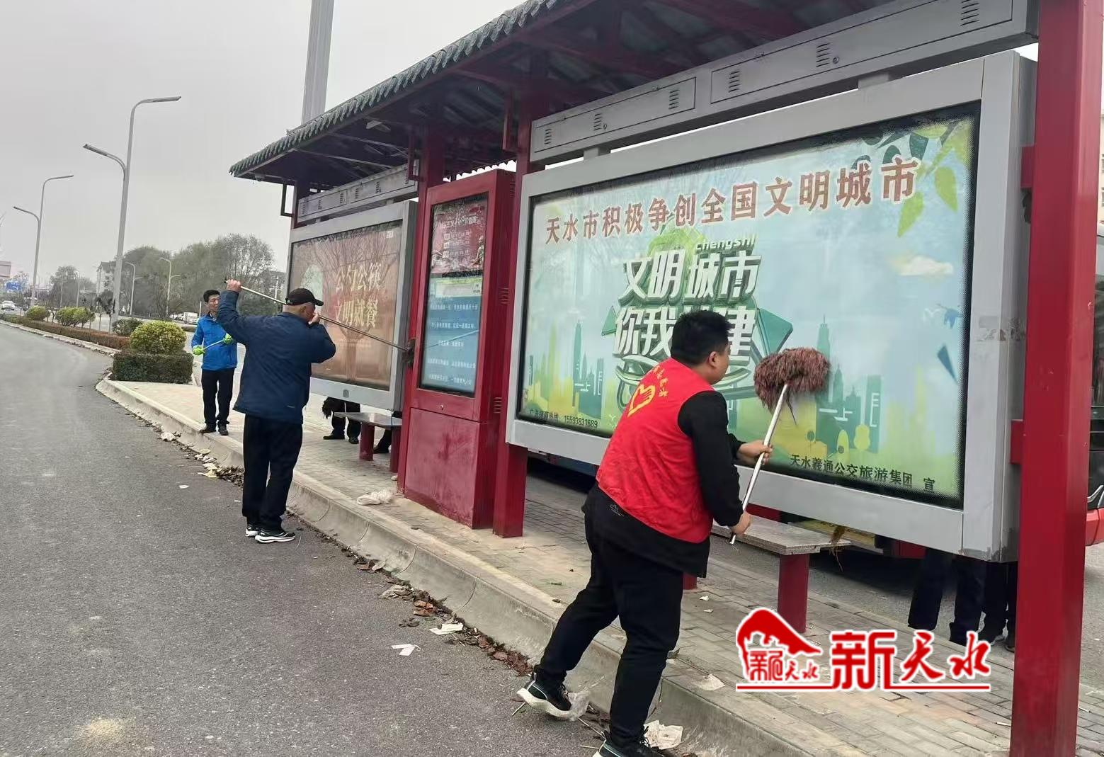 新天水讯【记者蔚军平】城市公交站亭是城市公共设施的重要组成部分,既彰显了市民文明素养,也体现着城市文明形象。连日来,天水羲通公交旅游集团志愿者服务队队员走上街头,对秦州、麦积两区的公交站亭进行了集中清洗,以实际行动积极助力文明城市创建,为市民营造干净、整洁、文明的公交出行环境。