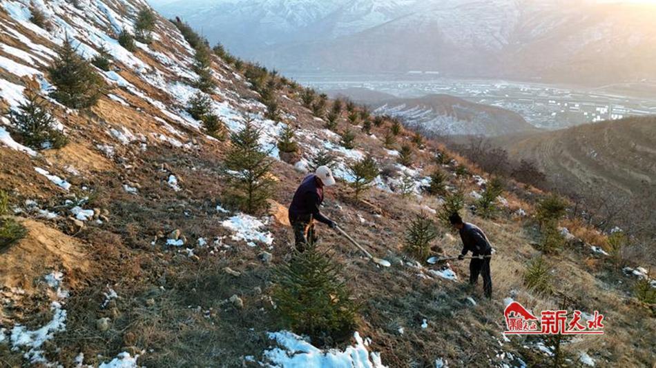 新天水讯【通讯员王正平 康军胜】近日,一场初雪为武山大地带来了冬的寒意,但在山丹镇陈家山退化林修复现场,专业的施工人员依旧在尚未消融的雪地中进行栽植工作。
