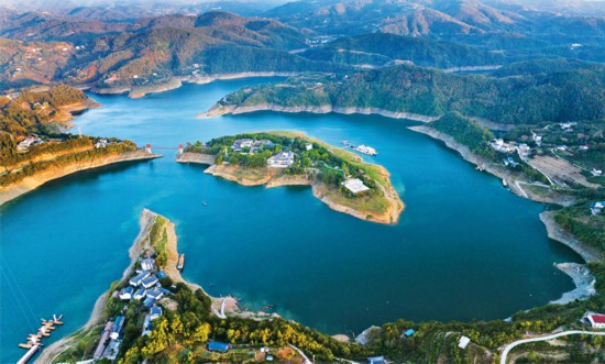 新时代以来,在习近平生态文明思想科学指引下,生态文明建设从理论到实践都发生了历史性、转折性、全局性变化,生态文明体制改革纵深推进,生态文明制度体系基本形成,生态环境质量持续改善。陕西省安康市多年来通过建立“河湖长制+志愿者”护河机制,扎实推进汉江水质保护工作,使汉江出境断面水质稳定保持国家地表水Ⅱ类标准。图为2024年11月2日拍摄的安康汉江瀛湖库区景色(无人机照片)。 新华社记者 邵瑞/摄